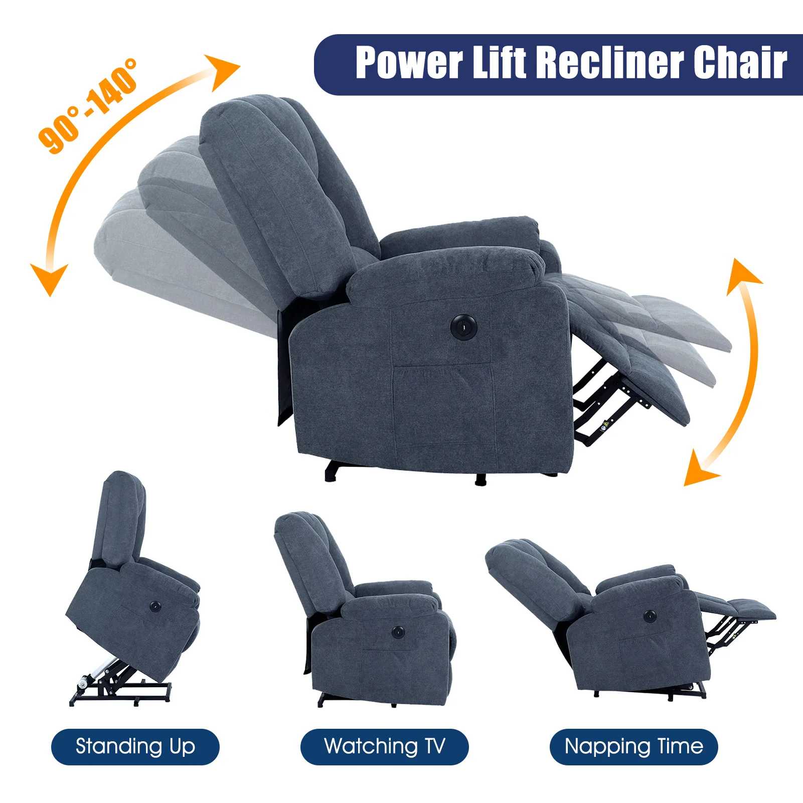 【CONVENIENT DESIGN】Thoughtful Storage Space & USB Charging Port, you can keep remotes and other small items,and charge your Low Power devices. Our lift chair reclines up to 160 degrees,smoothly adjust to lift or reclining position you prefer by pressing two buttons on the armrest, which is easy to operate for people of all ages. Weight Capacity – 330 lbs, Measure 36″”W x 32″”D x 42″”H. Kindly please confirm the size before buying.